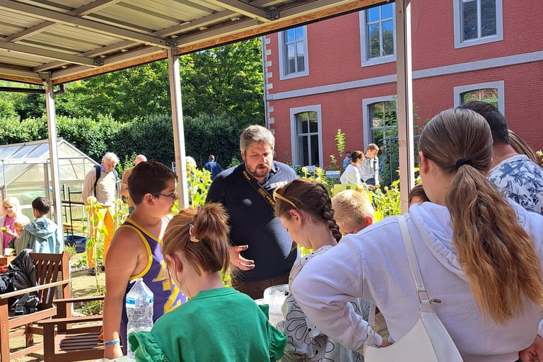 Ce dimanche, dans le cadre des Journées du Patrimoine consacrées à la gastronomie, notre jardin potager solidaire a ouvert ses portes en parallèle avec le musée du Val Saint-Lambert et les cristalleries. Entre démonstrations de soufflage de verre, visite du musée et découverte de nos cultures partagées, les visiteurs ont pu explorer deux visages complémentaires du patrimoine sérésien : l’art du cristal et la richesse de la terre nourricière.